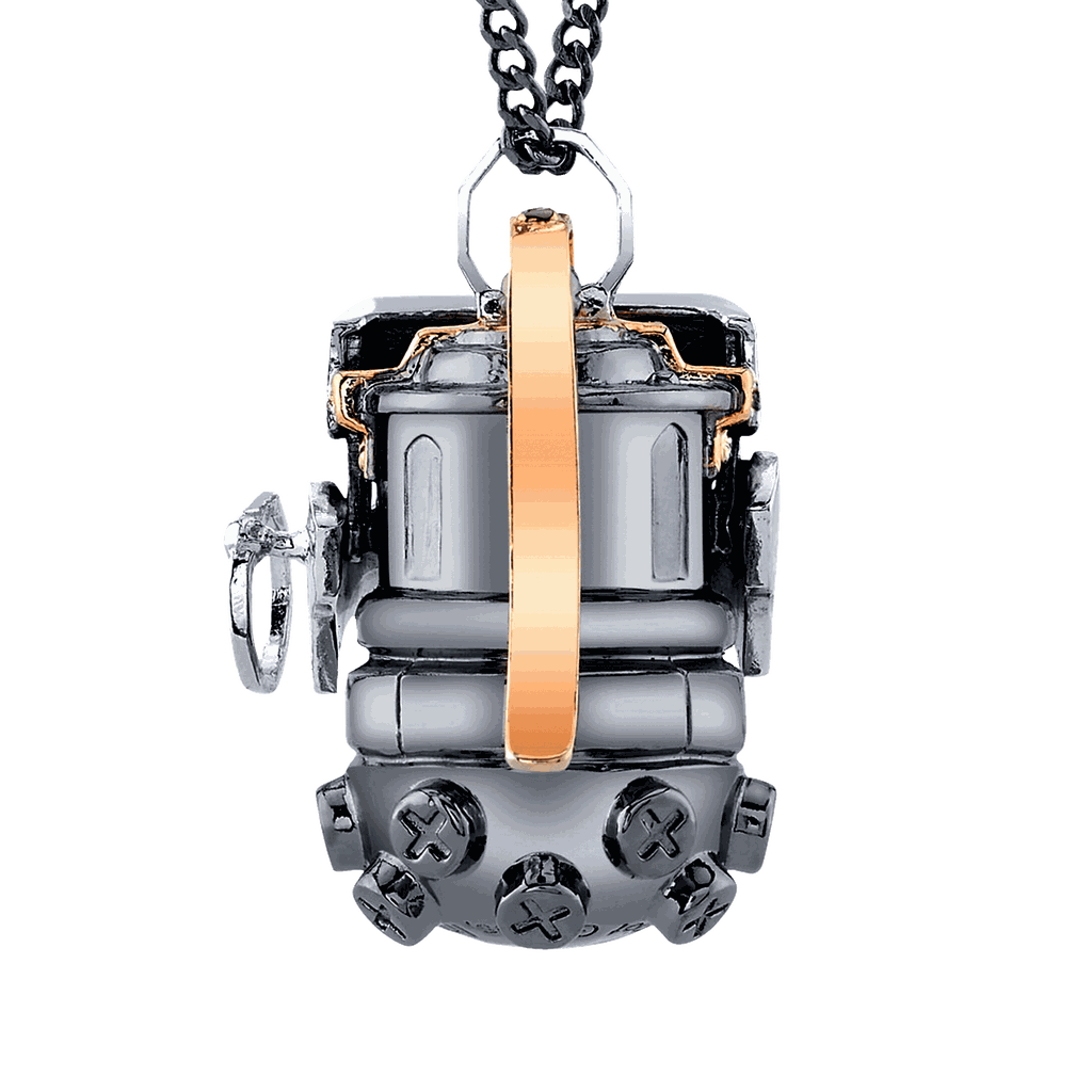 The Jinx Chomper Pendant arrives in a signature League of Legends X RockLove Collector's Box, with gold metallic silkscreened art inside and out: a compelling addition to any display case.