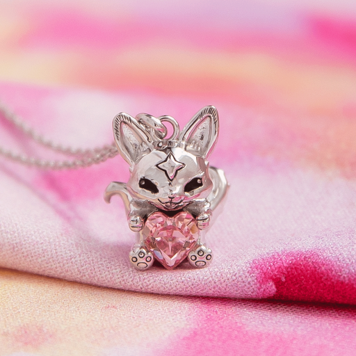 Handcrafted in solid nickel-free sterling silver, Kiko's heart sparkles just for you! Charmingly sculpted and antiqued for detail, the weighty three-dimensional Kiko frames a glittering soft pink faceted heart-shaped crystal. The pendant hangs from an adjustable nickel-free sterling silver rope chain with lobster clasp and League of Legends signature tag.