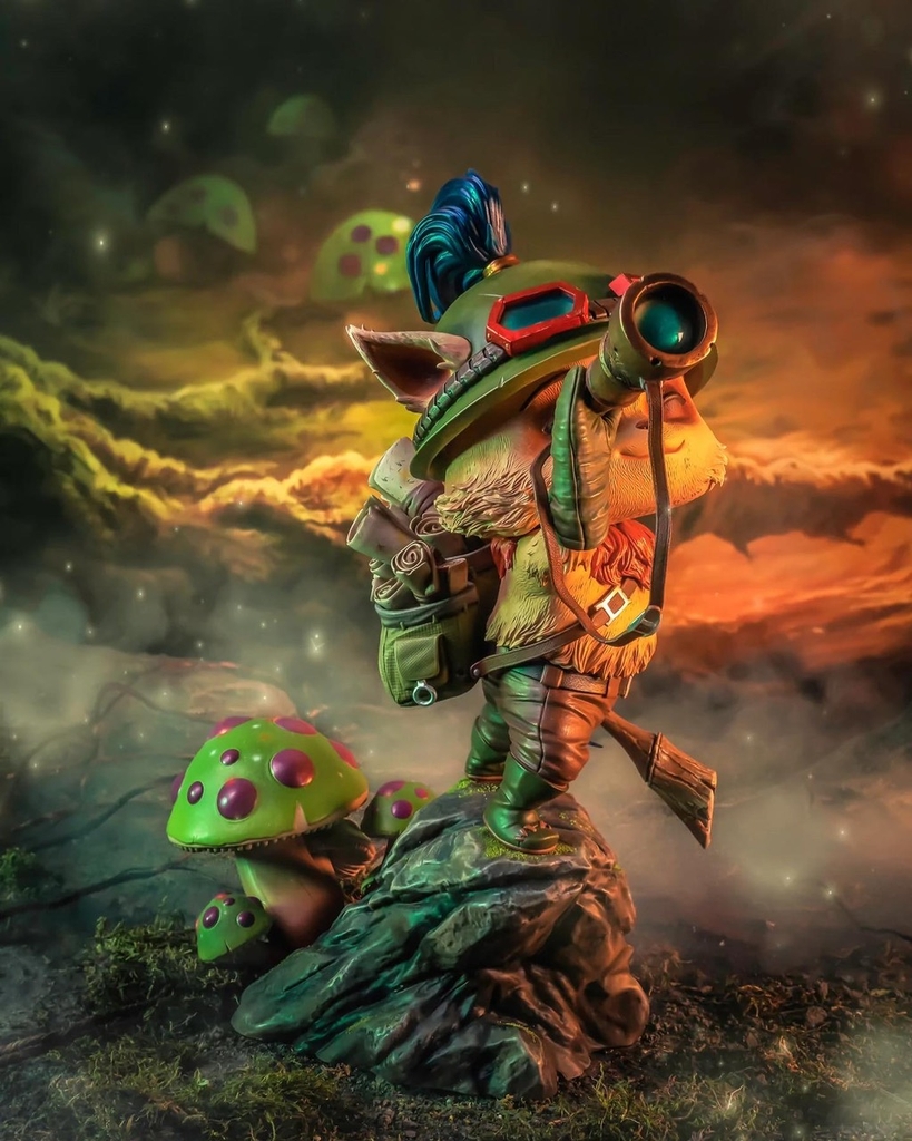 Standing on the edge of a cliff, Teemo scouts the world with boundless enthusiasm in whimsical 1/4 scale statue form!