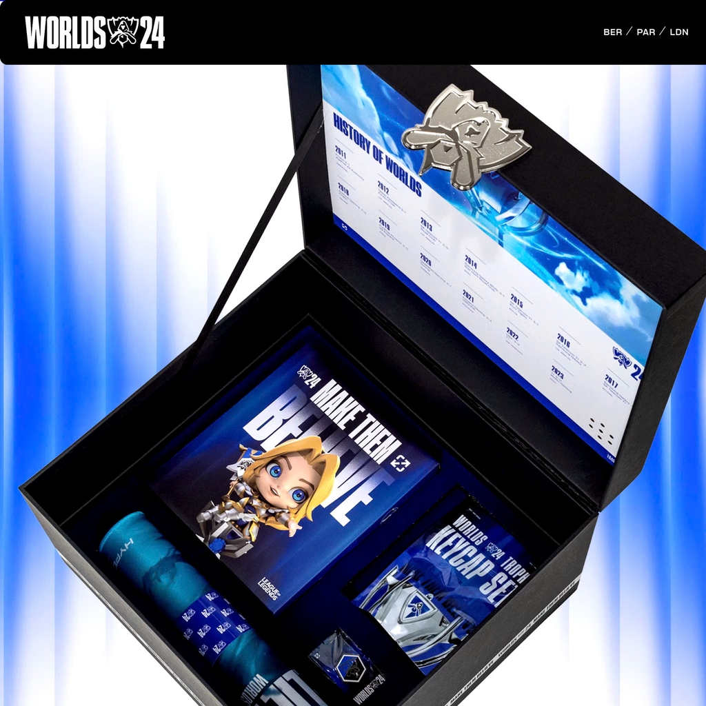 Worlds Unlocked trở lại vào năm 2024 để một lần nữa cung cấp một gói sản phẩm độc quyền gồm các vật phẩm vật lý và trong trò chơi để chào mừng sự kiện thể thao điện tử lớn nhất thế giới.